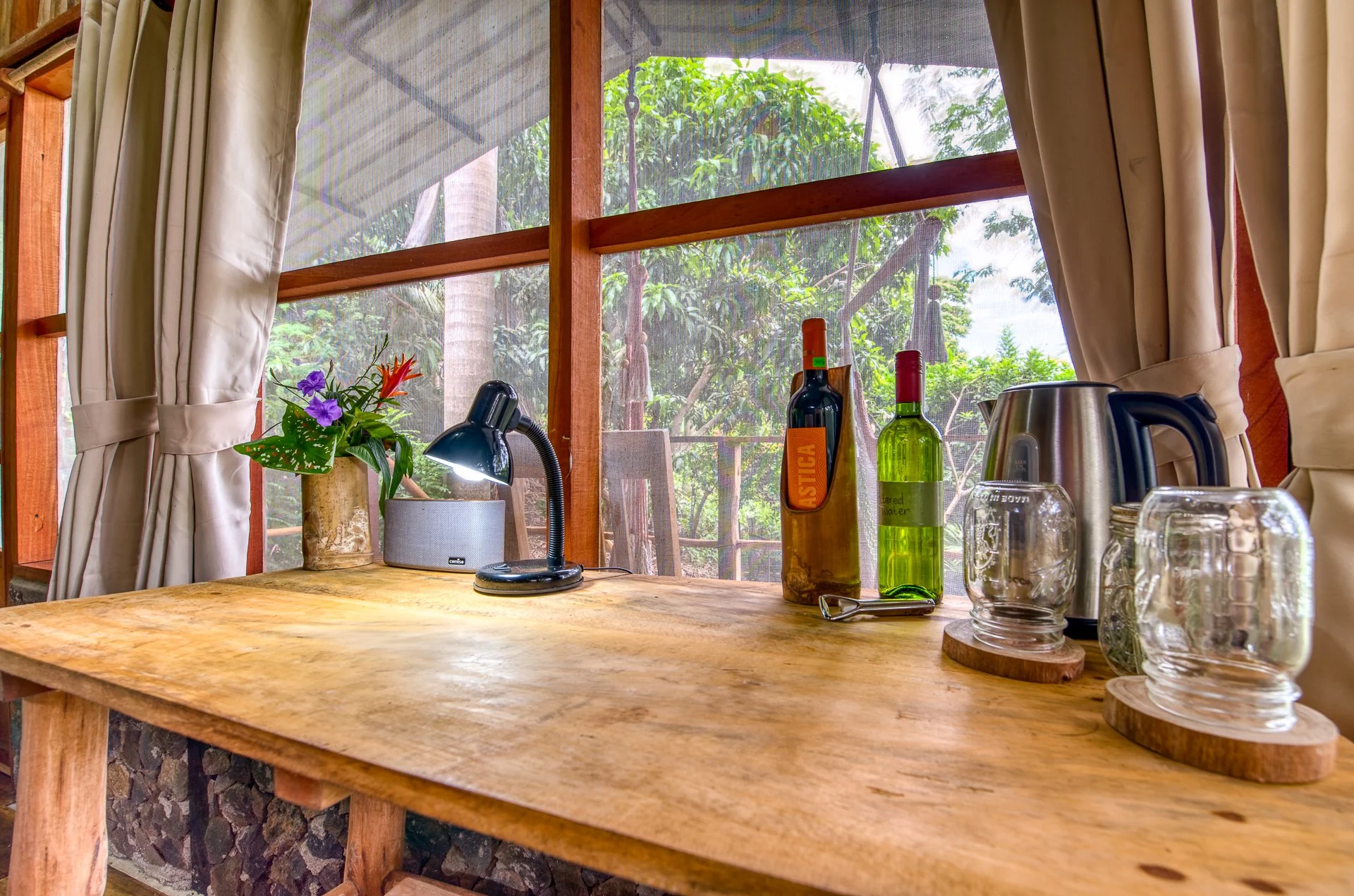 Farmhouse is situated conveniently just above our open kitchen area and easy access to our BBQ and grill. It sits at the side of an old Guanacaste tree where monkeys and iguanas like to hand out.